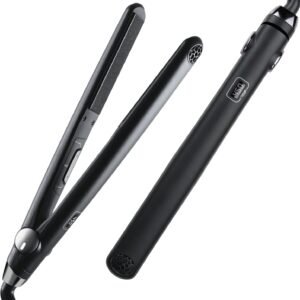 Cordless Hair Straightener and Curler, 2 in 1 Portable Mini Flat Iron & Curling Iron, Fast Heating & Titanium Plate Straightener with 4 Adjustable Temp,Travel Size Preferred Gifts (Black)