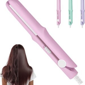 2-in-1 Electric Hair Straightener and Curling Iron with Ceramic Plates, Portable Anti-Scald Design for Wigs, Beards, and Travel