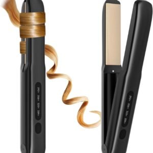 Flat Iron Hair Straightener and Curler 2 in 1 with 10s Fast Heating, 1 Inch Professional Titanium Straightening Curling Iron with 32 Adjustable Temp and Automatic Shut Off