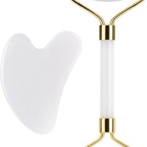 White Jade Roller and Gua Sha 2 in 1 Set for Face and Body Anti Aging, Anti-Wrinkle, Reducing Puffiness and Redness Facial Tools Face Roller and Gua Sha Set for Men Women