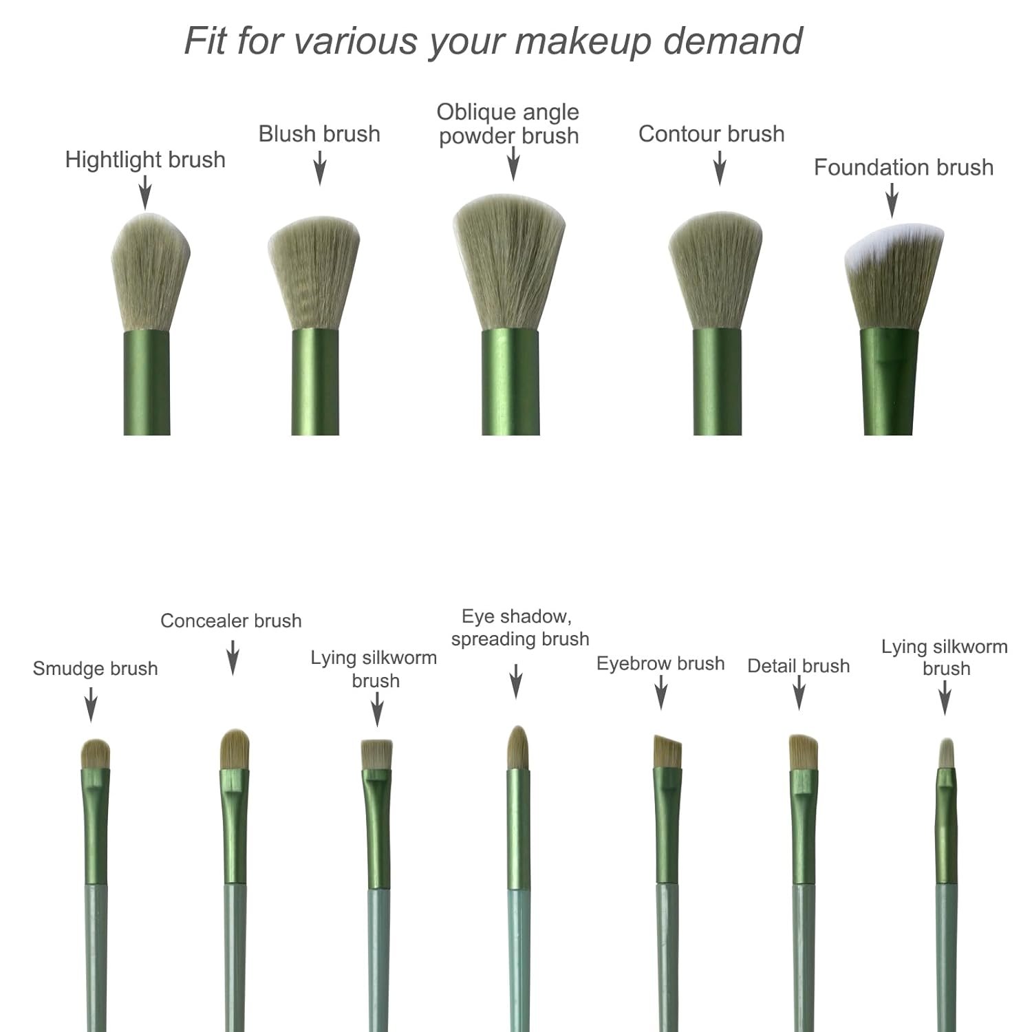 Makeup Brushes,Makeup Brushes Set,13 PCS Make Up Brushes for Foundation Eyebrow Concealer Eye Shadows Powder,Makeup Brush Kits for Travel and Daily Makeup Use (Green)